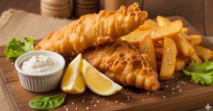 Golden, crispy battered fish served alongside thick-cut chips, hot, fluffy, and perfectly salted. This classic combo delivers comfort in every bite, with a splash of tangy vinegar or creamy tartare to elevate the flavor. Whether seaside or city-side, fish and chips is a timeless lunch that satisfies cravings and warms the soul.